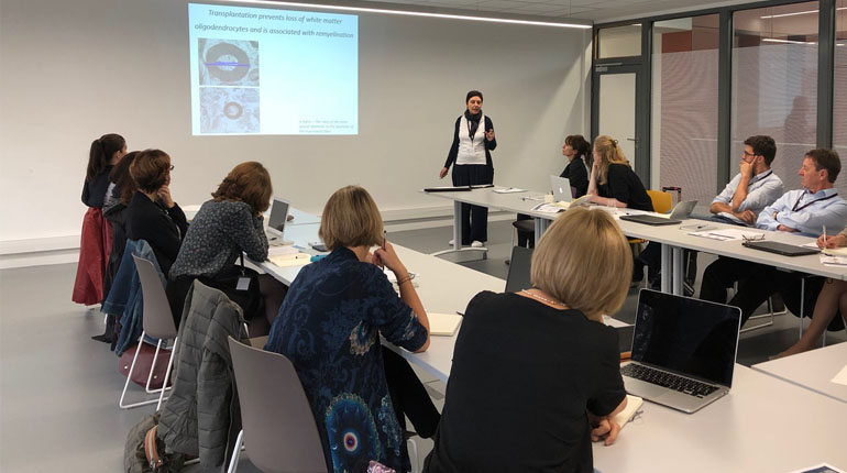 Lors du symposium organisé par ELA international à Luxembourg en décembre 2017, de nouvelles pistes de réflexion se sont mises en place pour la recherche médicale sur les leucodystrophies. Dans la continuité de ce symposium, Caroline Sevin, pédiatre au centre de référence des leucodystrophies et leucoencéphalopathies à l’hôpital du Kremelin Bicêtre, a initié un groupe de travail qu’elle souhaite inscrire dans un cycle de plusieurs réunions : le consortium ELA/MLD Research Group. Ce consortium est le résultat d’un partenariat entre elle et ELA International. Une quinzaine d’experts européens de la Leucodystrophie métachromatique (MLD), des cliniciens neurologues, greffeurs, biochimistes, anatomopathologistes, spécialiste de la microglie, et de l’imagerie médicale se sont réunis le vendredi 28 septembre 2018 sur le site de l’hôpital Cochin, à Paris.